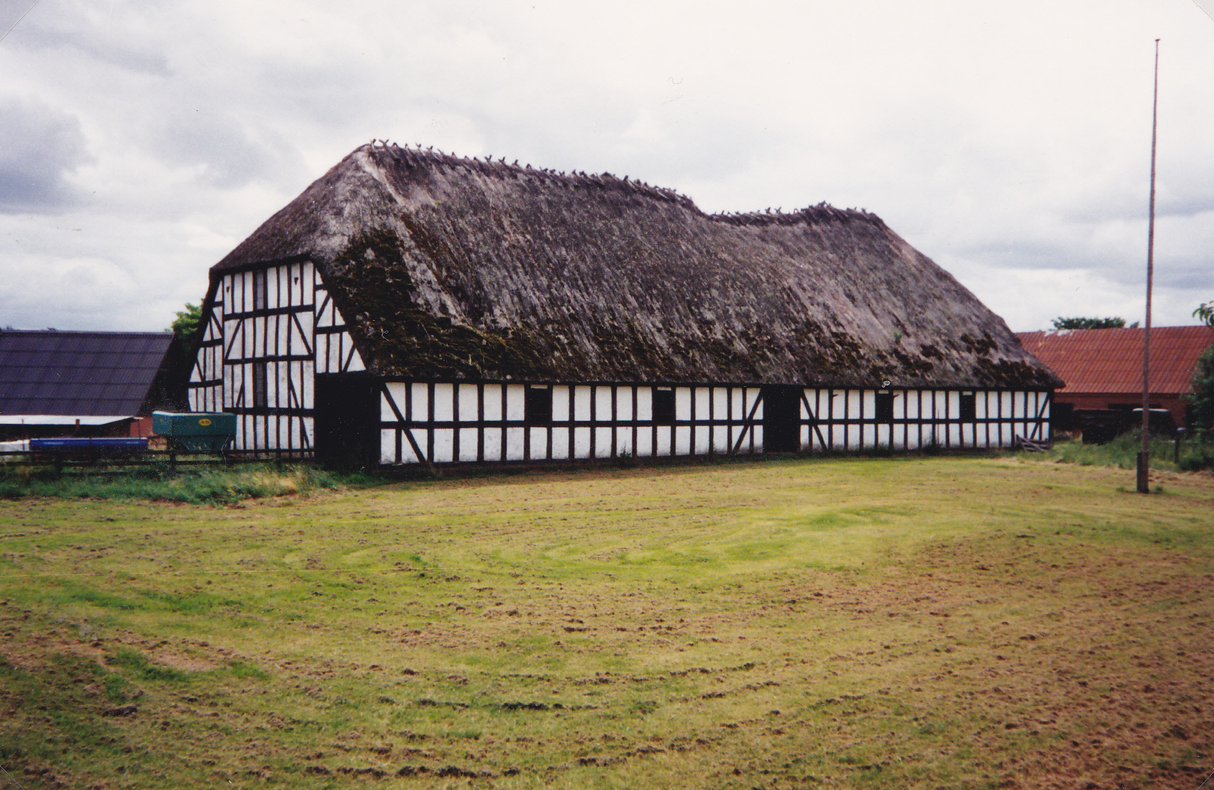 På den fredede ladebygning (bindingsværk og stråtag) var der på midterdøren indhugget i tømmeret: